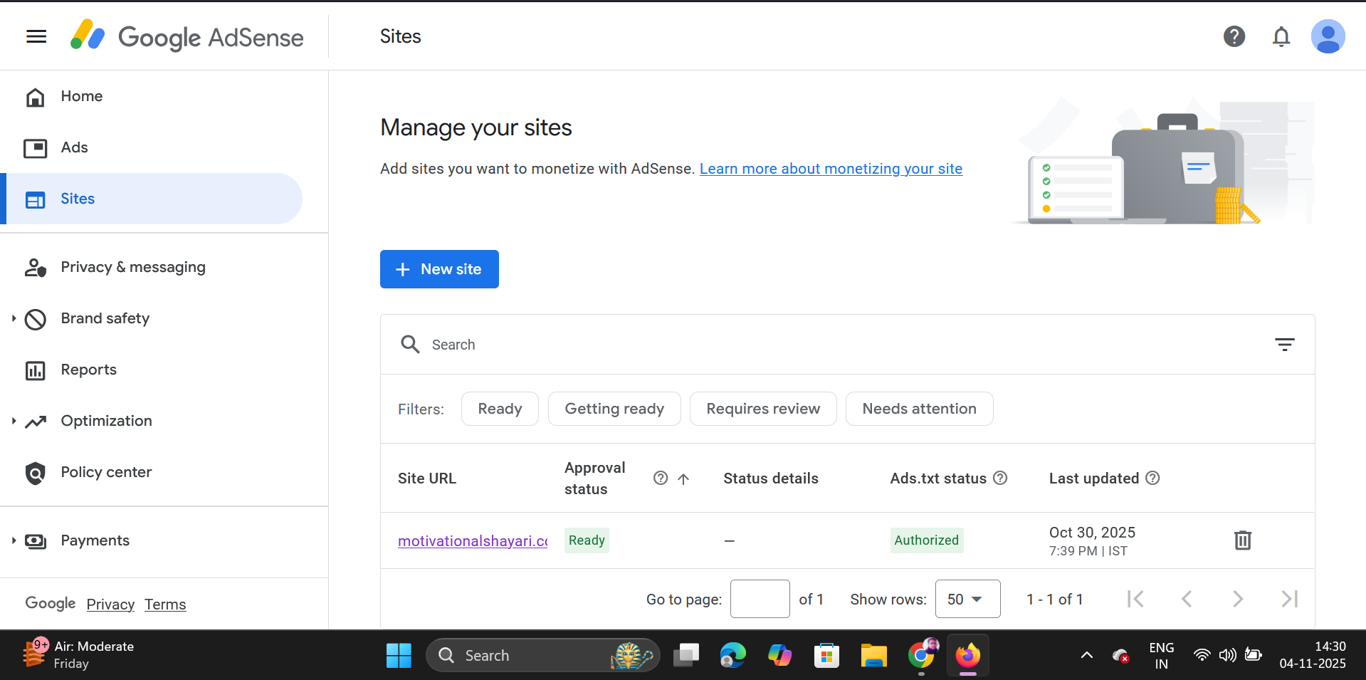 About: This is a fresh adsense approved website. This website got adsense approval on 30 oct. 2025. Domain Authority is is 18. Domain provider is hostingraja.